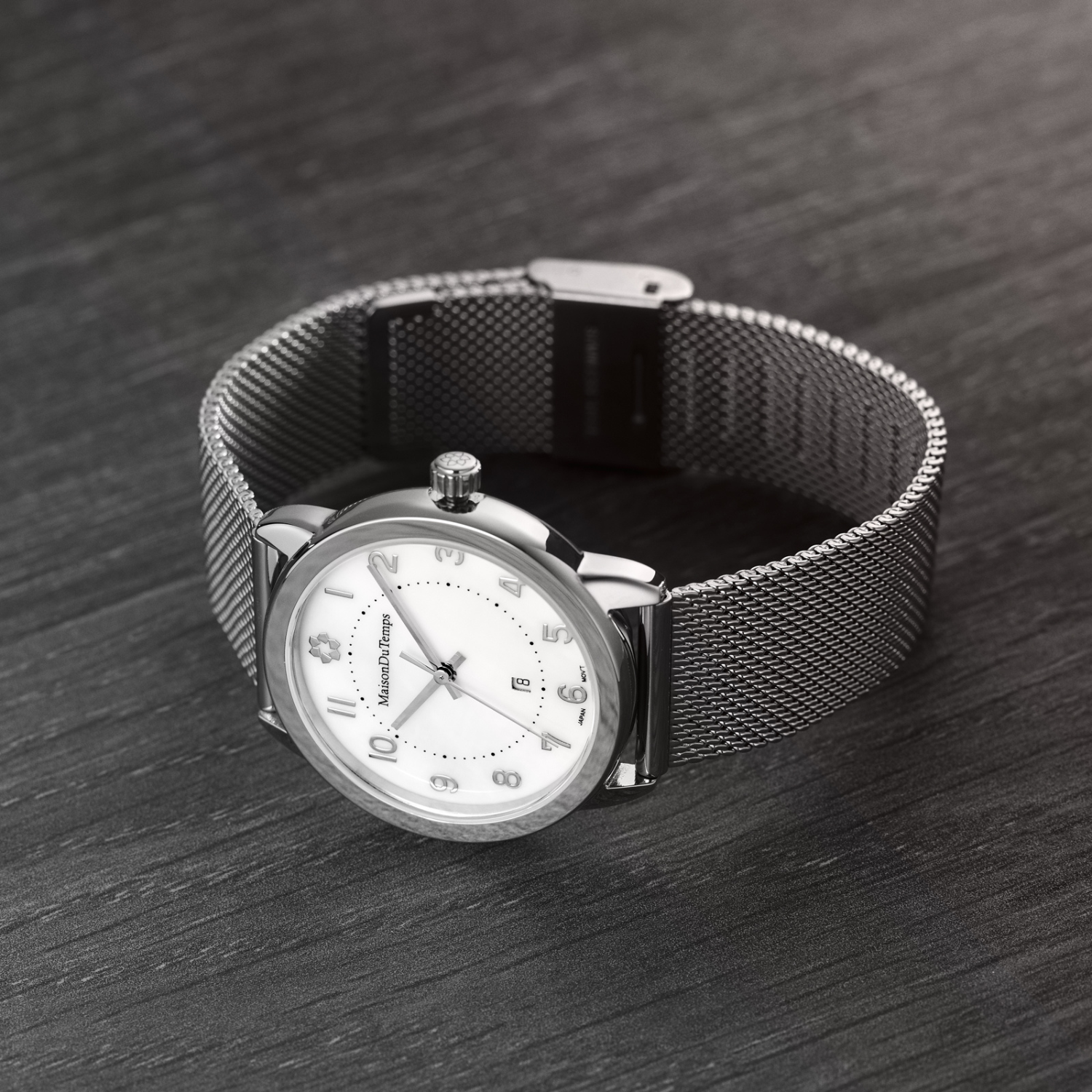 The MTMu is our first women's collection, offering two mother-of-pearl dials: white and pink. Its Milanese mesh bracelet, very popular on the women's watch market, combines style and comfort for all occasions.