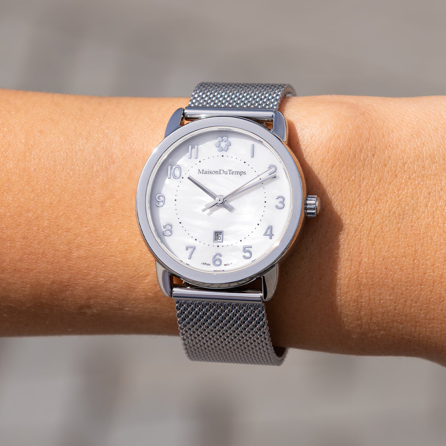 The MTMu is our first women's collection, offering two mother-of-pearl dials: white and pink. Its Milanese mesh bracelet, very popular on the women's watch market, combines style and comfort for all occasions.
