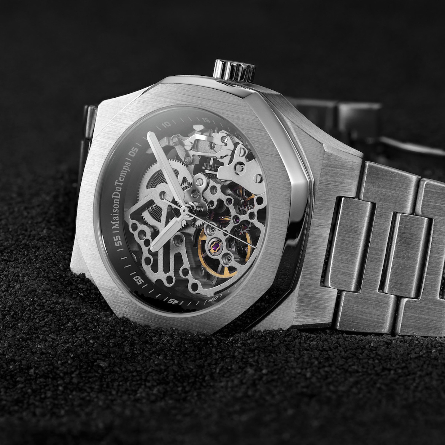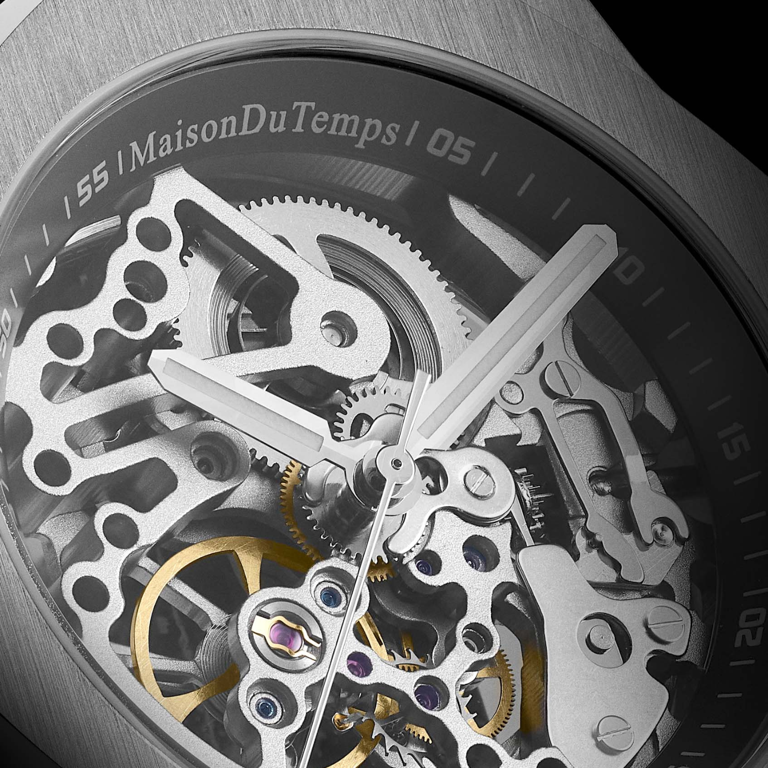 La montre MTBeta skeleton offre un design sophistiqué avec des caractéristiques distinctives. Son mécanisme apparent et ses bracelets interchangeables offrent une grande liberté de personnalisation entre l'acier et le silicone.