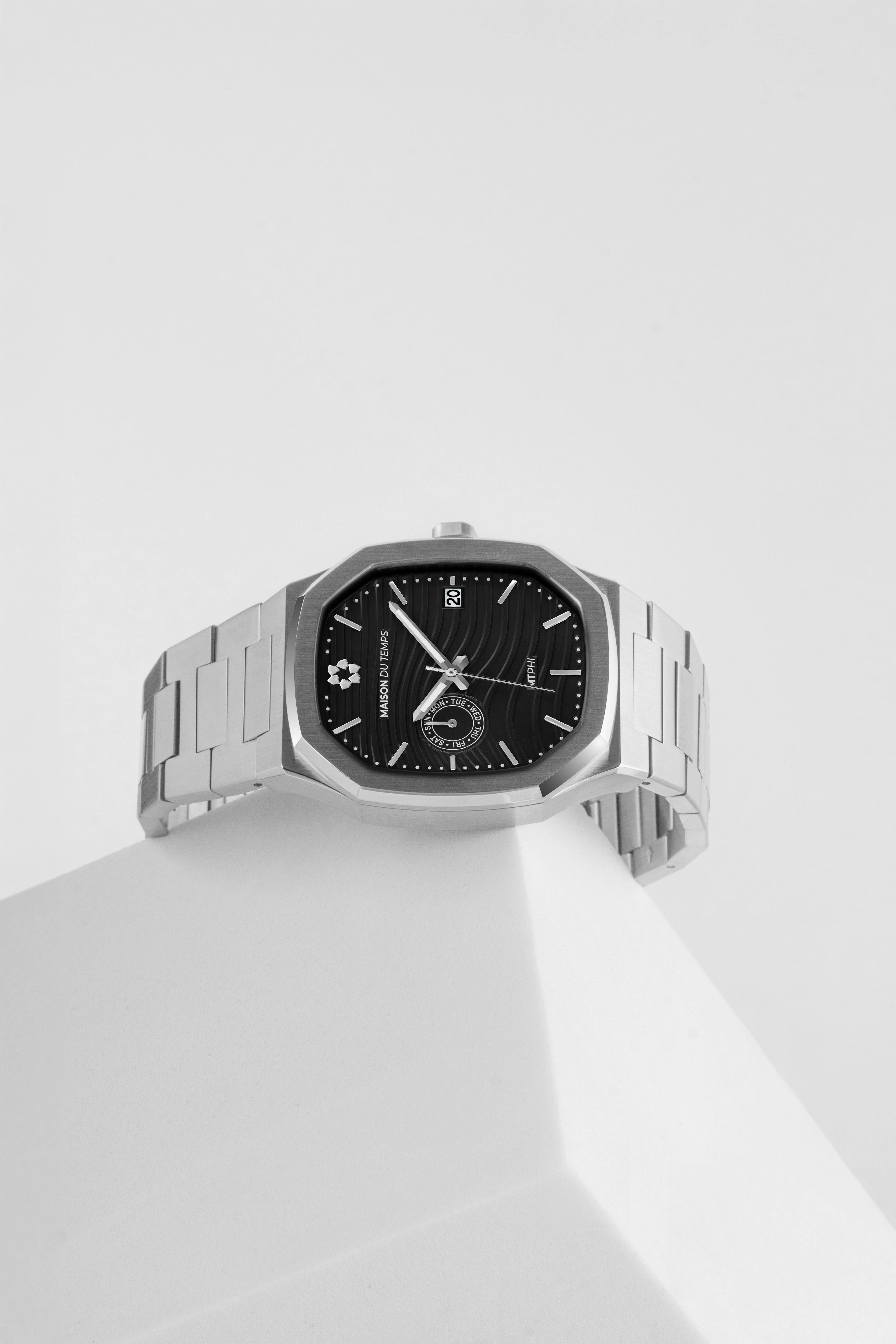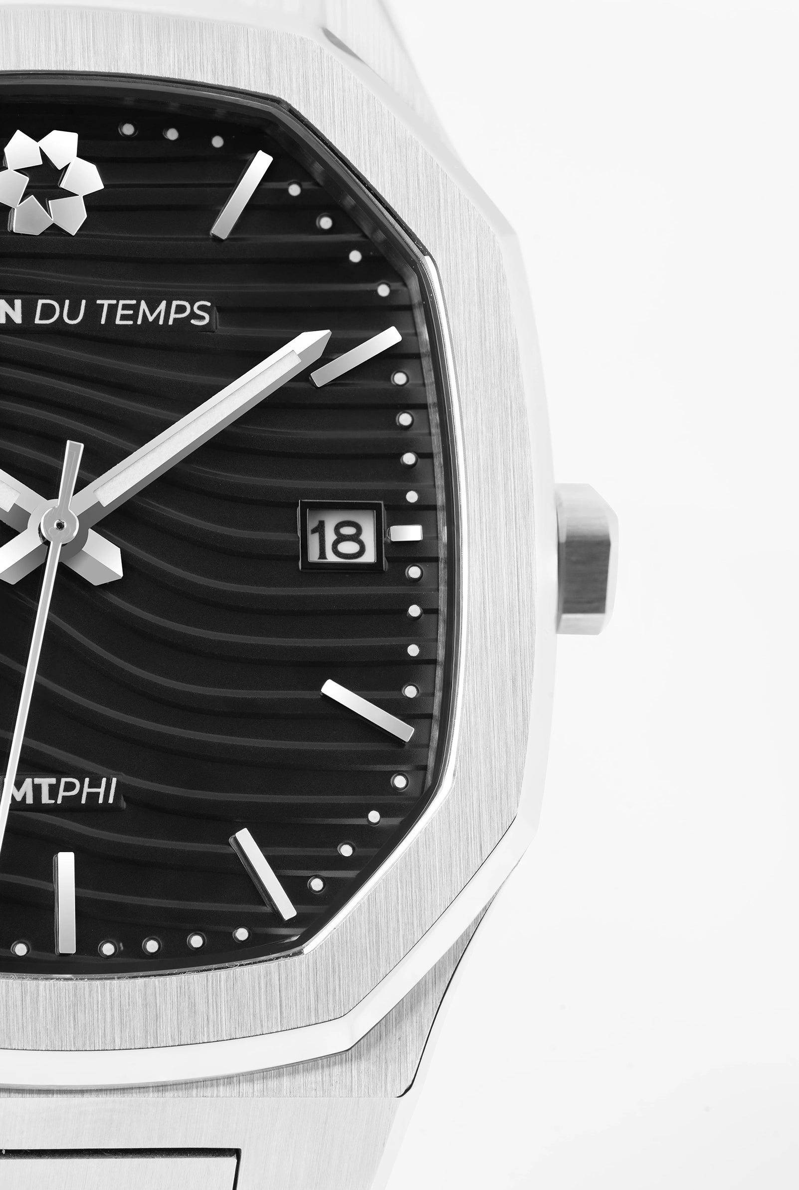 La MTPhi incarne l'expertise et le savoir-faire de MaisonDuTemps. Son cadran, orné de motifs en vagues, est le fruit d'un travail de recherche approfondi mené par notre équipe de design. Ce cadran unique allie esthétique et originalité tout en offrant une lisibilité optimale grâce à ses indexs.